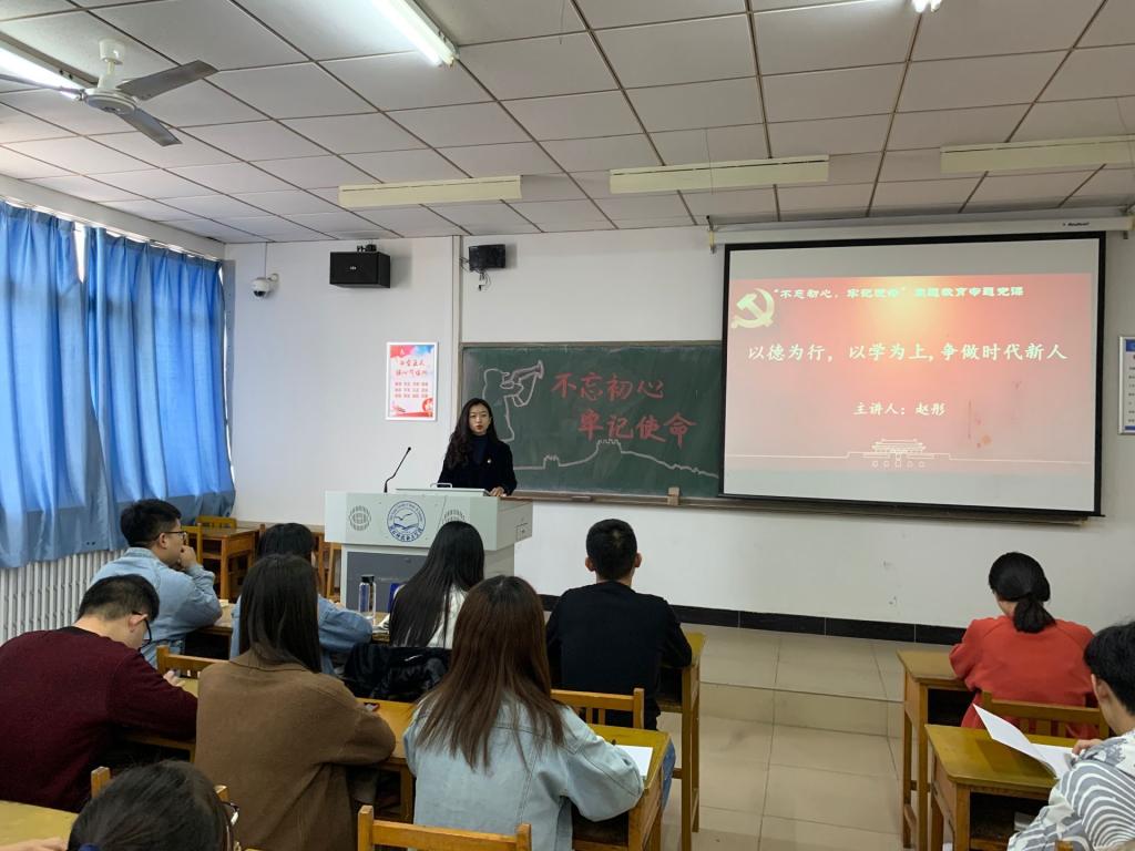 2019年10月31日,2007so太阳集团信息管理党支部书记为支部党员、积极分子讲授“不忘初心,牢记使命”专题党课。