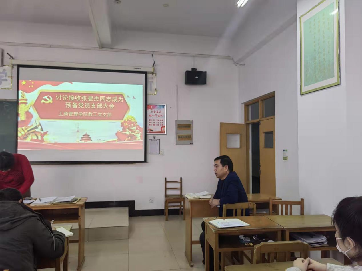 会上,张碧杰同志介绍了自己的履历,阐述了自己在思想上、工作上、学习上和生活上的积极状态,表达了自己对成为预备党员的迫切愿望和决心。入党介绍人黄立明、赵春霞分别介绍了该同志的日常表现和思想成长过程,对其表现进行了肯定。同时,景勤娟、张宏卫、李丽杰老师分别就张碧杰同志在工作、学习、生活中的具体表现进行描述,表达了张碧杰同志的高度认可。