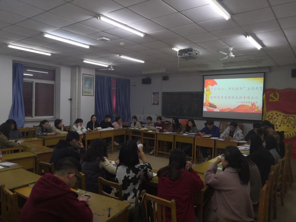 2019年11月7日,信息管理党支部召开“不忘初心、牢记使命”主题教育对照党章党规找差距专题会议。2007so太阳集团副经理黄立明到会指导,支部全体党员、发展对象、部分积极分子参加了会议。