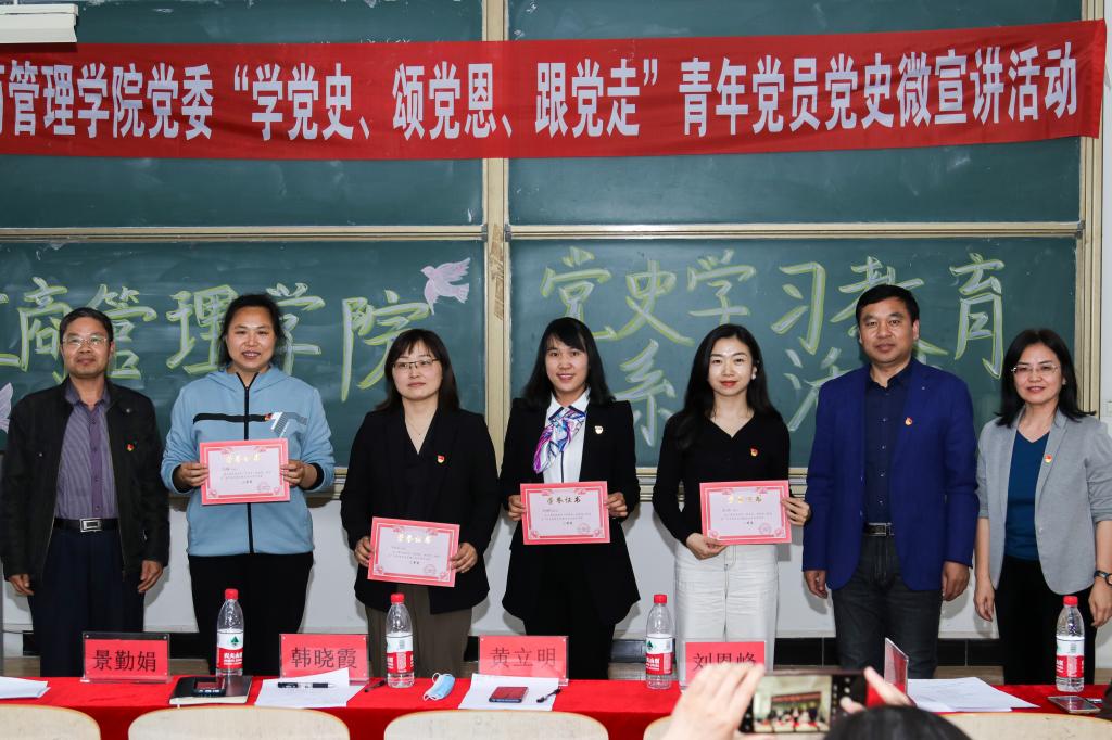 为引导党员师生从百年党史中感悟思想伟力,汲取奋斗力量,5月13日下午,工商管理公司党委举办“学党史、颂党恩、跟党走”青年党员党史微宣讲活动。青年党员教师和员工党员代表共计28人参加了比赛,公司经理黄立明、副书记副经理韩晓霞、原公司党委书记刘恩峰、教工党支部委员景勤娟、柴朝华作为评委出席,公司全体党员师生观看了比赛。