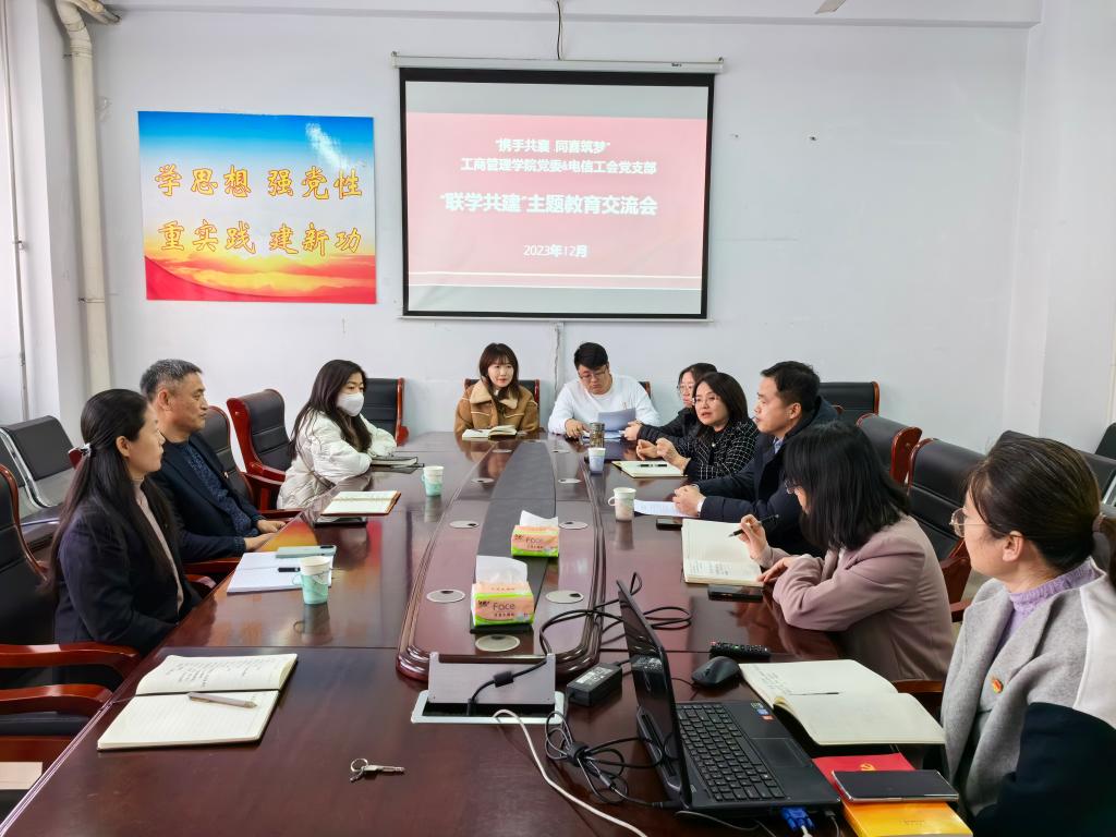 2023年12月18日下午,工商管理公司党委与中国电信秦皇岛分公司工会党支部开展了“携手共襄﹒同喜筑梦”党支部联学共建活动。中国电信秦皇岛分公司工会党支部书记一行2人,工商管理公司党委成员及基层党支部书记、团委书记、党员代表等参加了此次活动。