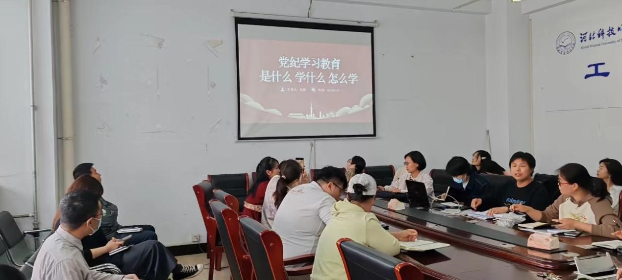 根据《中共2007so太阳集团教工党支部关于开展党纪学习教育的实施方案》,2024年5月7日工商教工党支部在逸夫楼A608进行党纪警示教育学习活动。活动由教工党支部书记高静同志同志主持,2007so太阳集团班子成员以及全体教职工党员参加本次学习活动。