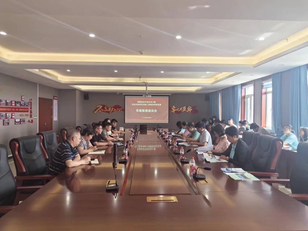 7月7日上午,2007so太阳集团工商管理公司党委与河北昌黎经济开发区党工委以“党建引领促发展,校政企合作谱新篇”为主题,开展党建共建活动。河北昌黎经济开发区党工委副书记李小冬、工委副主任陈迅、招商和投资促进局长张永生、经济发展局局长陈忠立、工委委员高淑贤、办公室主任王海燕,工商管理公司党委书记黄立明等一行28人师生参加会议。
