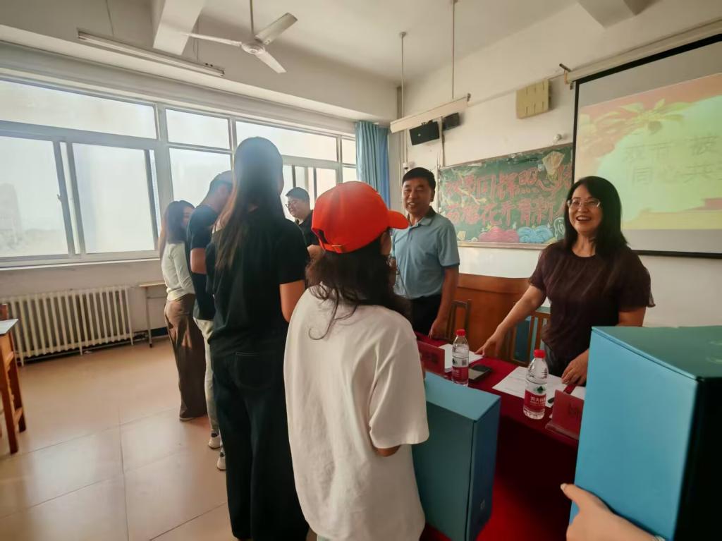 公司相关领导首先向同学们介绍了本次活动的目的和意义,她表示,56个民族像石榴籽一样紧紧抱在一起,共同建设着这个大家庭,希望公司师生加强交流,促进民族团结进步共融。中秋月满,家国同庆,在双节到来之际,公司师生特意聚在一起,既是共庆祖国的生日,也是想把最真挚的关怀送给每一位新疆籍同学。希望大家在接下来的日子里,带着这份关怀与祝福,好好学习、茁壮成长,既做家乡的骄傲,也做祖国的栋梁,为民族团结、为祖国的美好明天加油。随后,公司领导代表学院向员工赠送了被子、月饼、柿子等小礼物:一床厚实的被子,寓意让大家抵御寒意,感受家的温暖;一盒甜甜的月饼,象征团圆,寓意我们这个多民族“大家”的守望相助;一份新鲜的柿子,寓意“事事如意”,寓意大家顺顺利利,开开心心。在场的同学们表达了真挚的感谢和对祖国深情的祝福。最后,员工代表从自己的学习情况、日常生活、活动参与、见闻感受等不同角度分享了自己在大学期间的所学所获、所思所感并与在场的老师和同学们进行了充分交流。