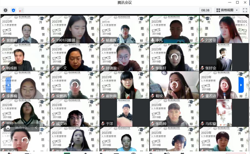 2023年1月9日,人力资源教学部通过腾讯会议举行了2019级人力资源管理专业员工毕业论文开题答辩。开题答辩分为开题报告和答辩两部分。撰写开题报告是论文前期文献调研的聚焦点,对毕业论文的写作起到定位作用。而开题答辩是通过专业老师的评议判断确定论文的研究价值、研究方法是否恰当以及论文的写作逻辑是否存在缺陷。因此毕业论文开题答辩不仅是毕业论文工作中的重要环节,也具有非常重要的作用。