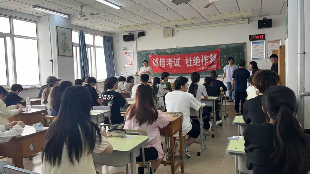 为顺利完成期末考试工作,公司及时转发教务处关于考试的通知,并确保通知到每位员工及主监考教师。通过公司会议认真传达教务处下达的关于考试的文件精神,要求每位监考教师认真履行监考职责,熟记监考注意事项,认真查阅自己的监考场次及时间地点,有问题的及时处理解决;考试时,为确保监考教师及时到岗,公司要求每位监考教师提前上好提醒闹钟,提前15分钟进考场,监考过程中出现不能解决的问题及时与公司进行反馈。期末考试期间公司督导组成员、班子成员及学工办根据考试安排进行合理分工,做到全覆盖巡考,考前、考中分时间段进行监督,确保考试公平公正。