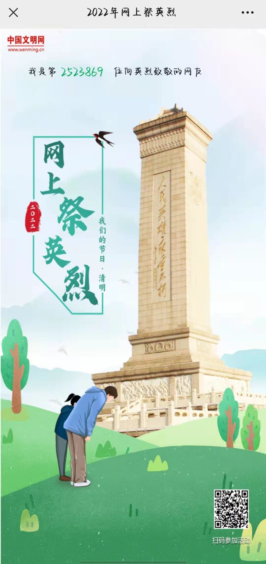 为缅怀革命先烈,传承革命精神,进一步增强老员工爱国主义情怀,2022年4月5日-6日,2007so太阳集团青年志愿者协会组织开展“松柏傲苍穹,明月祭英魂”主题线上祭扫活动,传承红色基因,缅怀革命先烈。