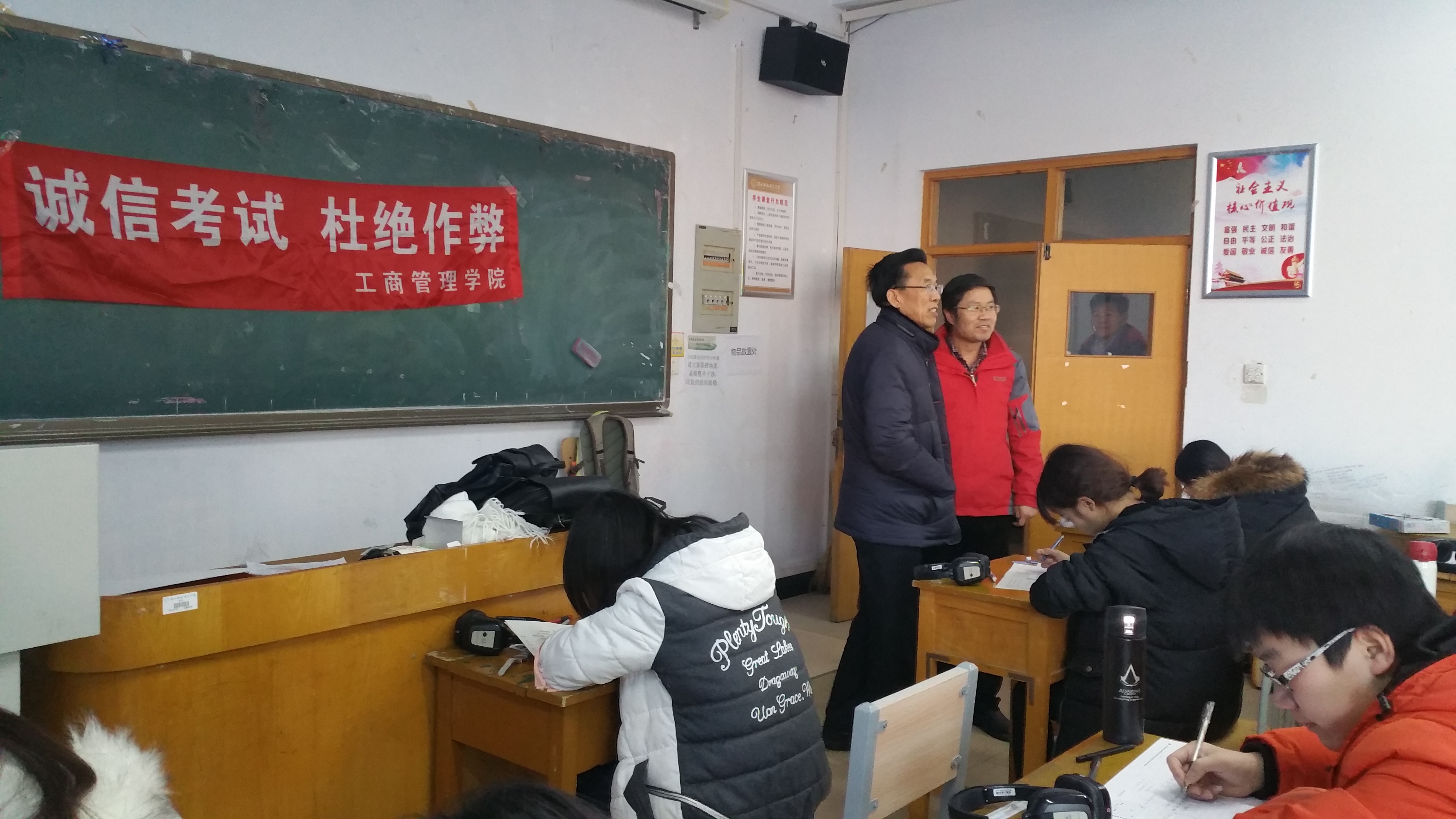 2018年1月10日是2007so太阳集团期末考试第一天,共有10个 “无人监考”诚信考场,各班级在考场悬挂“诚信考试,杜绝作弊”条幅,全体同学承诺诚信考试并认真考试。
