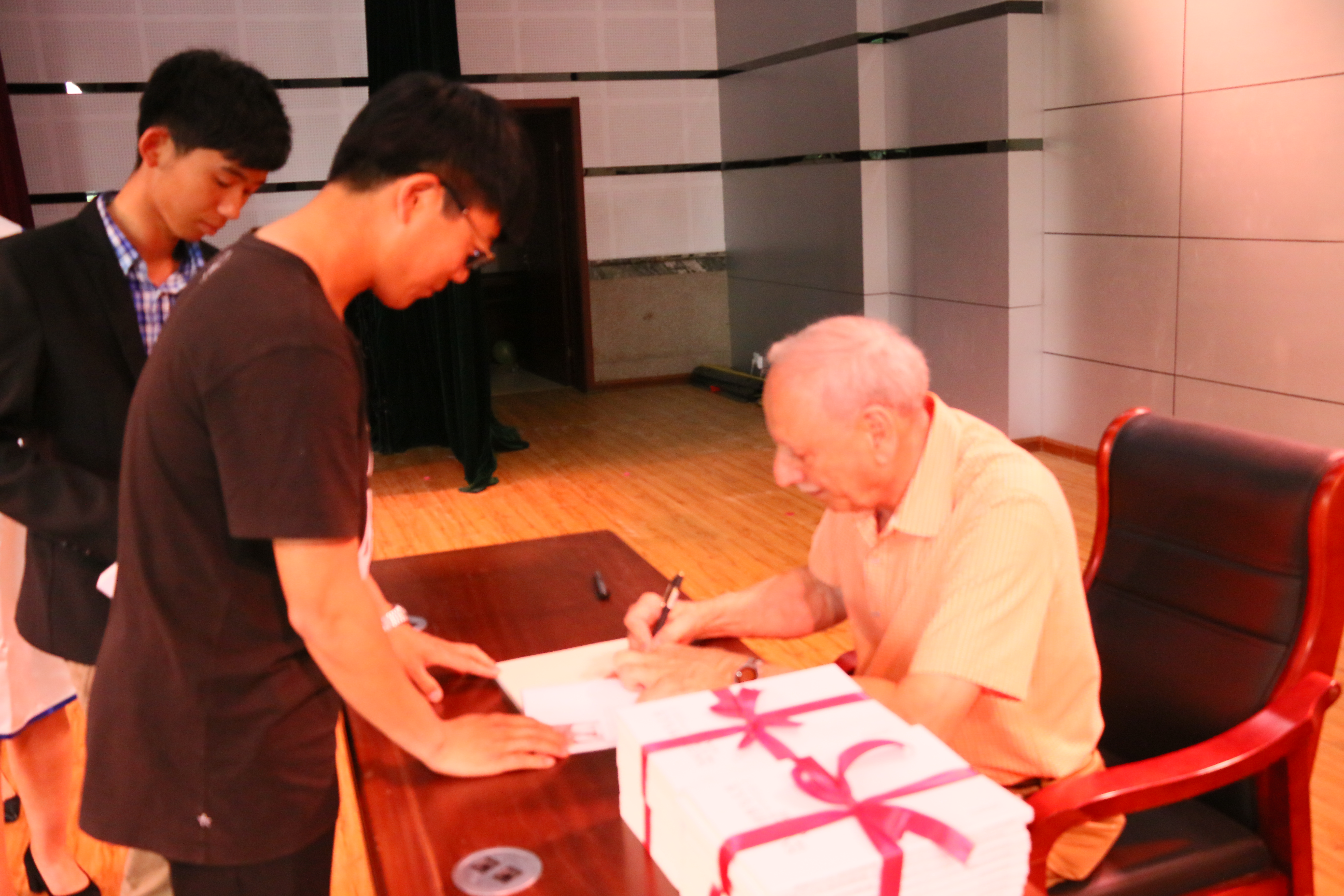 讲座期间,乔达诺先生分享了他成长与成功的经历,并围绕营销、创业和人生等多领域话题与师生进行了深入的交流。他诙谐幽默的语言即富有人生启迪又给大家带来阵阵欢笑,同学们则用英语与乔达诺先生进行了愉快的交谈。随后,乔达诺先生向公司捐赠了他的著作《销售与人生》,公司副书记副经理李强华教授代表公司回赠了礼物。按照乔达诺先生的意愿,所赠图书将进行义卖,所得款项全部捐赠给公司精准扶贫村小学。