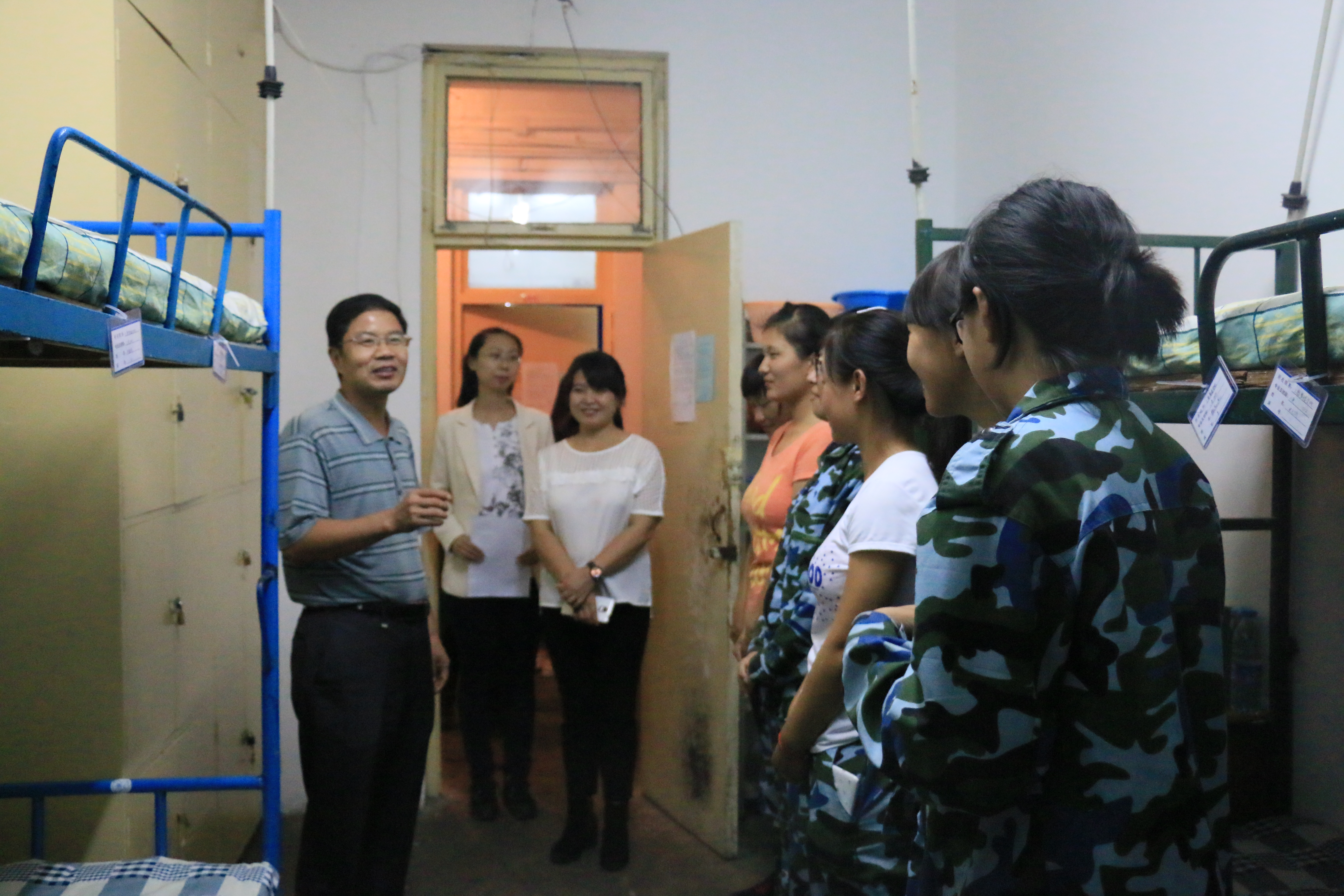 9月24日晚上7点,工商管理公司党委书记刘恩峰、经理侯金柱、党委副书记副经理李强华、副经理黄立明在全体辅导员老师的陪同下到员工宿舍一一看望慰问2015级新生,向新生带去中秋祝愿。