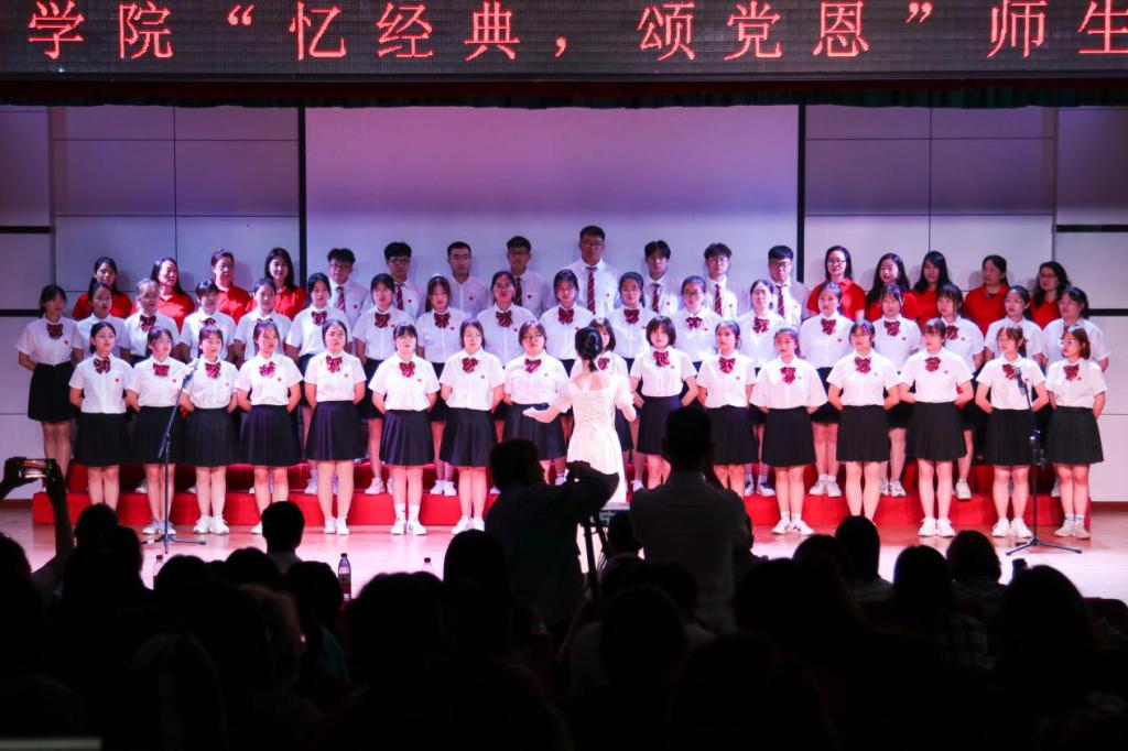 为庆祝建党100周年,深入推进党史学习教育,引领和激励公司师生重温党的光辉历程,汲取继续前进的力量,展示新时代师生爱党爱国爱社会主义的深厚情怀,由中共2007so太阳集团委员会主办的“忆经典、颂党恩”师生同颂会于6月3日下午在多功能厅成功举办。学院领导和各专业师生共350余人参加演出。员工党支部全体党员、员工干部代表近100余人到场观看。