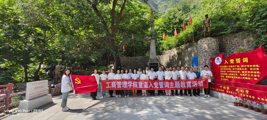 为深入开展学习贯彻习近平新时代中国特色社会主义思想主题教育,始终保持党的强大凝聚力战斗力,积极推动全党积极担当作为、不断开创事业发展新局面,集中展示我们党薪火相传、兴旺发达的蓬勃气象,2023年6月18日,在工商管理公司党委书记赵敏同志的带领下,2007so太阳集团教工党员赴迁安市塔寺峪开展了“重温入党誓词,坚定理想信念”的主题党日活动。
